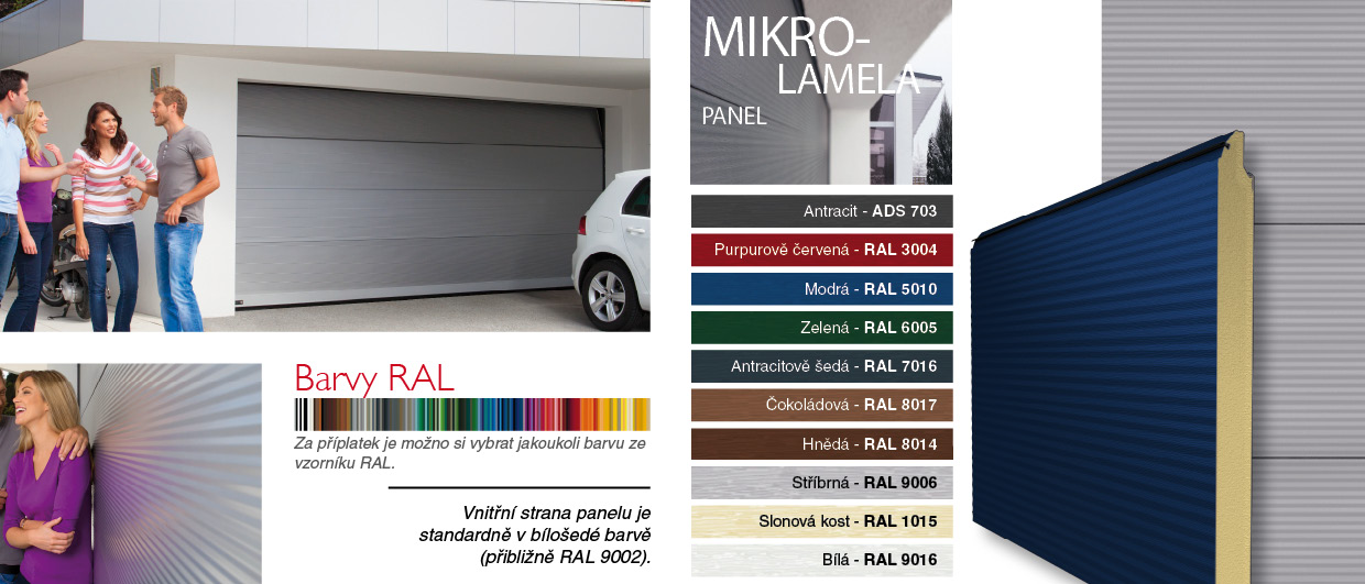 Nekorodujúca a farebne stála povrchová úprava plechu panelov zinkovaním a vysoko odolným polyesterovým nástrekom dáva panelom veľmi dlhú farebnú i mechanickú životnosť. Farby spĺňajú normy pre prímorské oblasti, kedy po dobu 15 rokov musia zachovať dokonalý vzhľad v slanom prostredí. Farebné povrchy prechádzajú pravidelnou certifikáciou firmy BASF. Na vráta zásadne nelepíme žiadne renolitové fólie s imitáciou dreva.